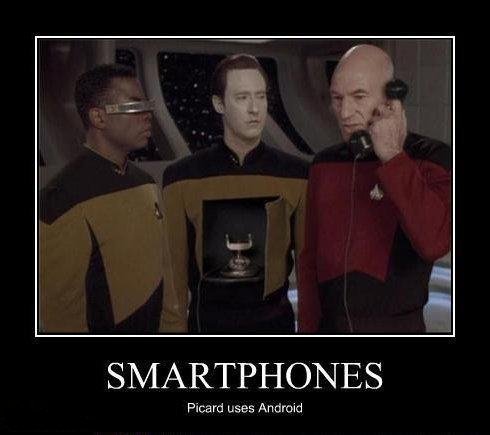 Net als Picard gebruik ik sinds een maand Android, de onbekende Acer beTouch e130 (wie verzint zulke namen toch?). Goedkoopste Android met toetsenbord die ik kon vinden, en doet het aardig. Hij doet bellen, smsen, internetten, agenda-en, muziek luisteren en notities best goed. Af en toe wat traag (vooral MP3's op de SD-kaart indexeren duurt een eeuwigheid).