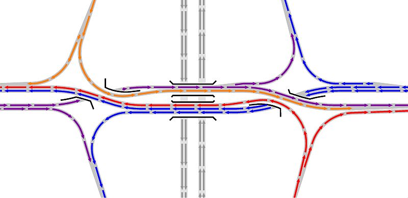 Weer 'n leuk bericht op Reddit: alles over het ontwerpen van verkeersinfrastructuur. Dit lijkt me wel wat om eventueel in te belanden later, al begrijp ik dat er een vrij specifieke studie aan vooraf gaat. In ieder geval, via deze post kwam ik langs de Nederlandse Turbo-rotonde en plaatjes zoals deze: